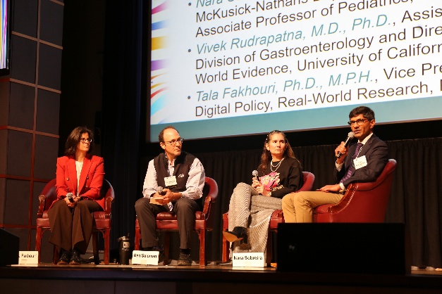 Speakers noted several challenges with AI tools that still need to be addressed. Many tools are cloud-based, raising concerns about data privacy and security. In addition, AI tools can be costly, and standard models often require customization, which is not always practical. Experts also emphasized that precise quantification of disease risks should be incorporated during tool development. Finally, rare diseases data are often limited and inconsistent, which can pose challenges for training accurate AI models.